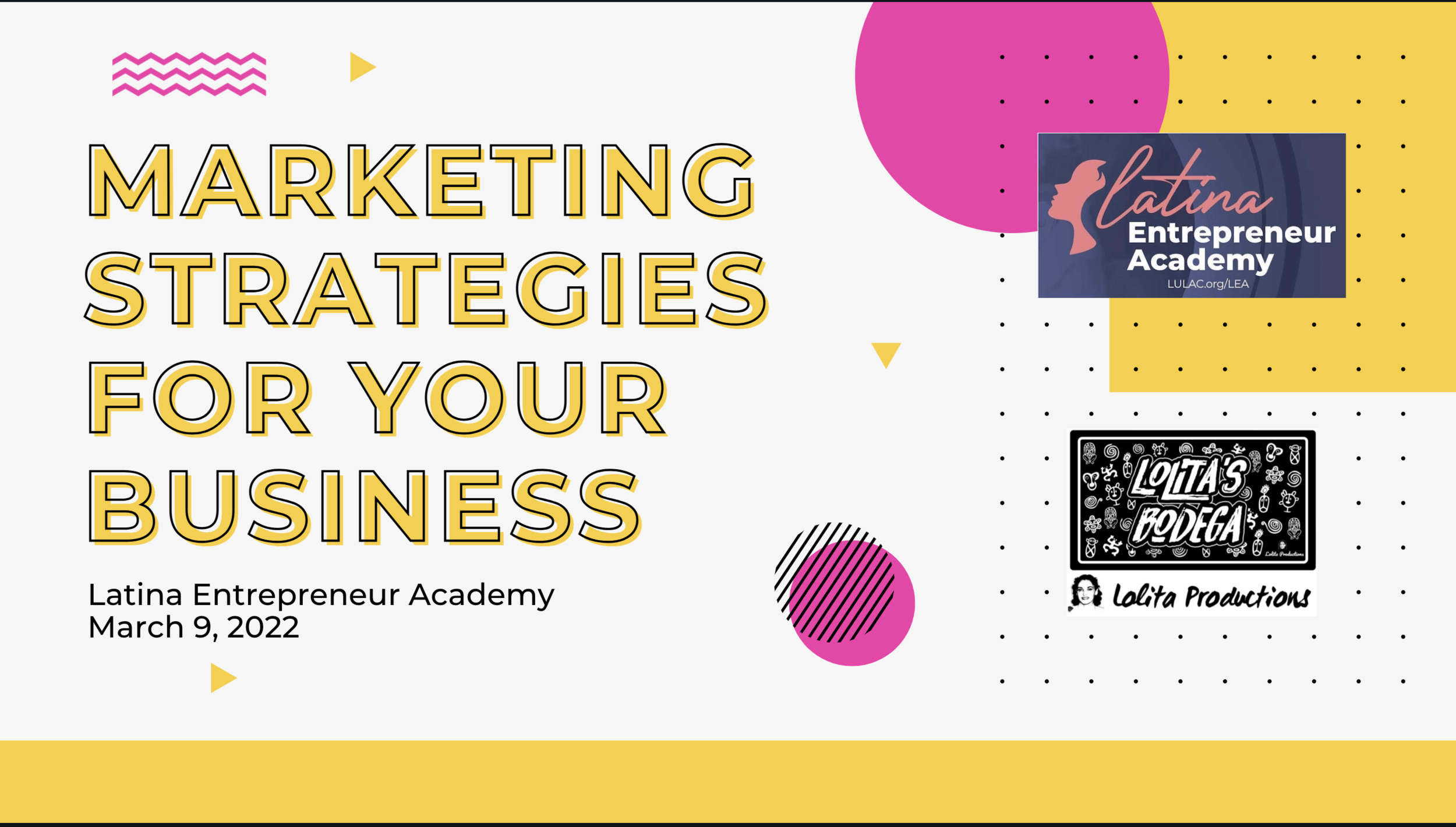Latina Entrepreneurship Academy - Day 2 Wednesday, March 9, 2022 9:00 AM 1:00 PM Google Calendar ICS Marketing Strategies for your Business